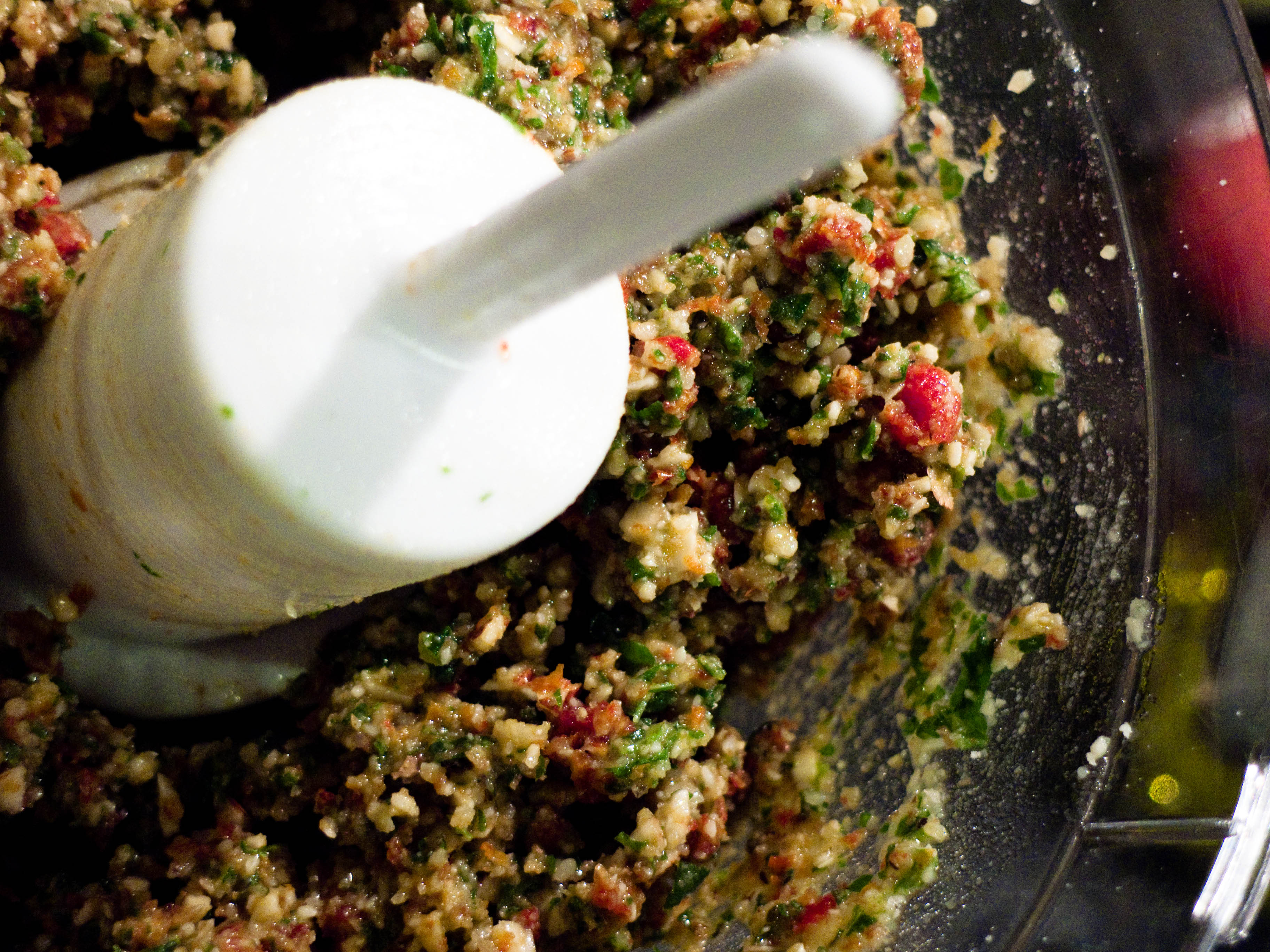 Pesto. It’s always a winner. But when my plan to make traditional pesto was foiled by a bad batch of basil, I needed to improvise. That’s how I came up with this sundried tomato version — a sweeter take on the original. Delicious with pasta (or spread on crostini), this recipe gets a lot of action at my house.