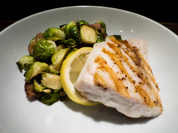 Mahi Mahi with Pork Belly Brussels Sprouts (serves 2)