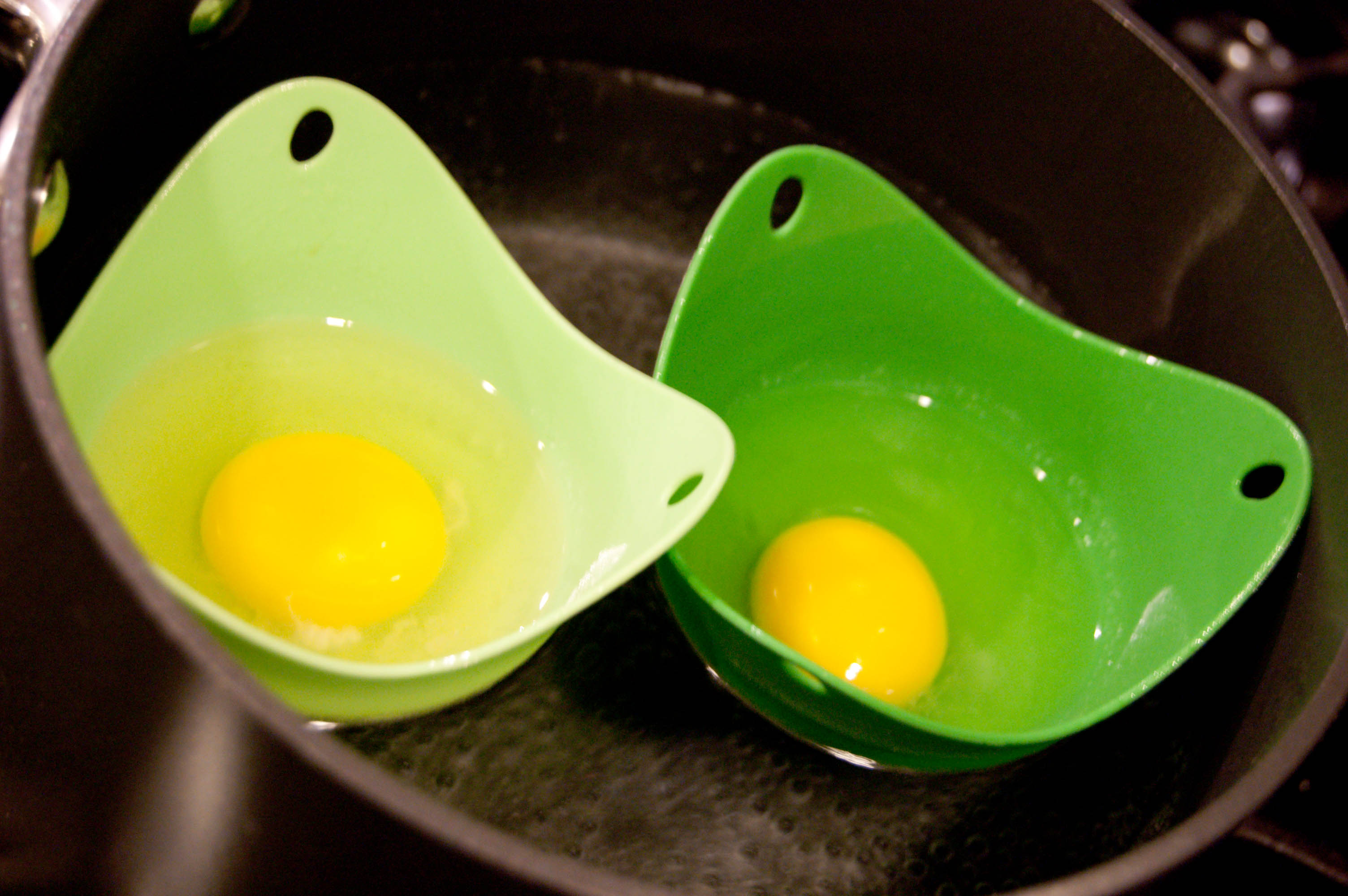 I’m really bad at making poached eggs. Like, really bad. So for Christmas, my friend Jasmin bought me Poach Pods — cute little silicone cups that hold the eggs while you poach them. And they’re awesome. (But admittedly, the eggs do look kinda funny once they’re done poaching. Not nearly as pretty as eggs poached the traditional way. Oh well — they still taste good!)