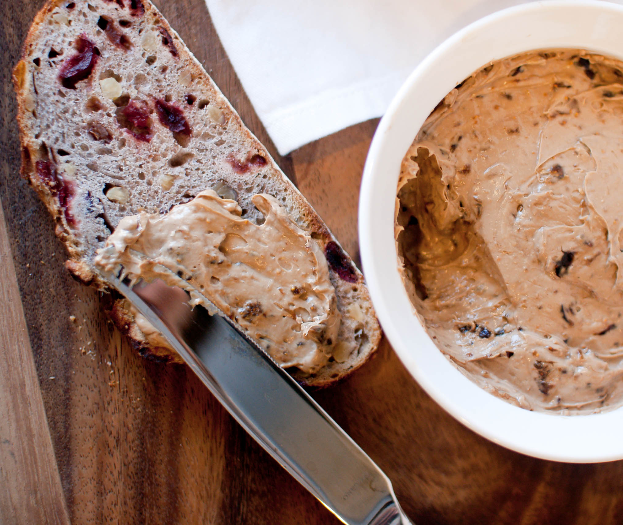 My local Whole Foods Market sells this amazing cranberry walnut sourdough, which I knew would be the perfect match for this spread. Although really, you could slather this stuff on practically anything and it’d be delicious. The combination of sweet figs, tangy aged balsamic and creamy Neufchatel (fancy lingo for low fat cream cheese) is so amazing it makes a plain bagel and cream cheese seem so…pedestrian.