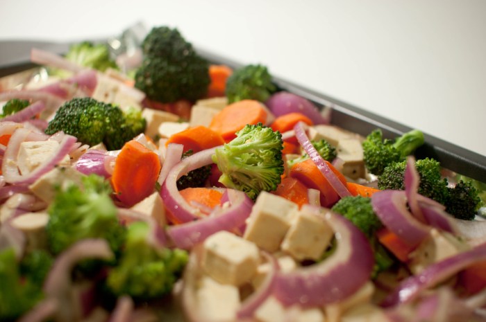 So, I gave it a try. The hubs was skeptical, so I made him a pork chop too…just in case. “How did you cook the tofu? Was it in the oven with the veggies?” he asked. When I told him that it was, he said, “interesting.”