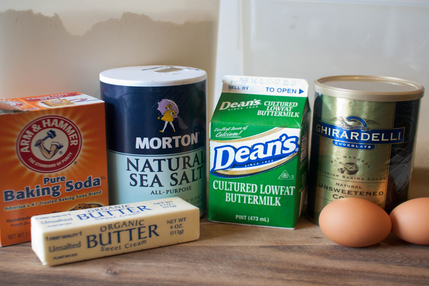 1. In a large mixing bowl, combine flour, baking soda, salt, sugar and cocoa powder.