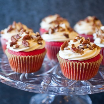 Red Velvet Cupcakes with Bourbon Cream Cheese Frosting