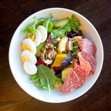 House Salad: Quinoa, Lentils and Veggies with Sliced Steak